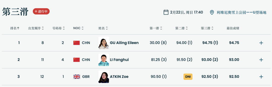 李方慧在随后也给中国观众带来惊喜!她不断提升自己的完成度,拿到91.50分来到第二!英国选手佐伊·阿特金此后一跳出现失误,在第二跳结束后,以第一跳90.50分的最高得分排在第三。